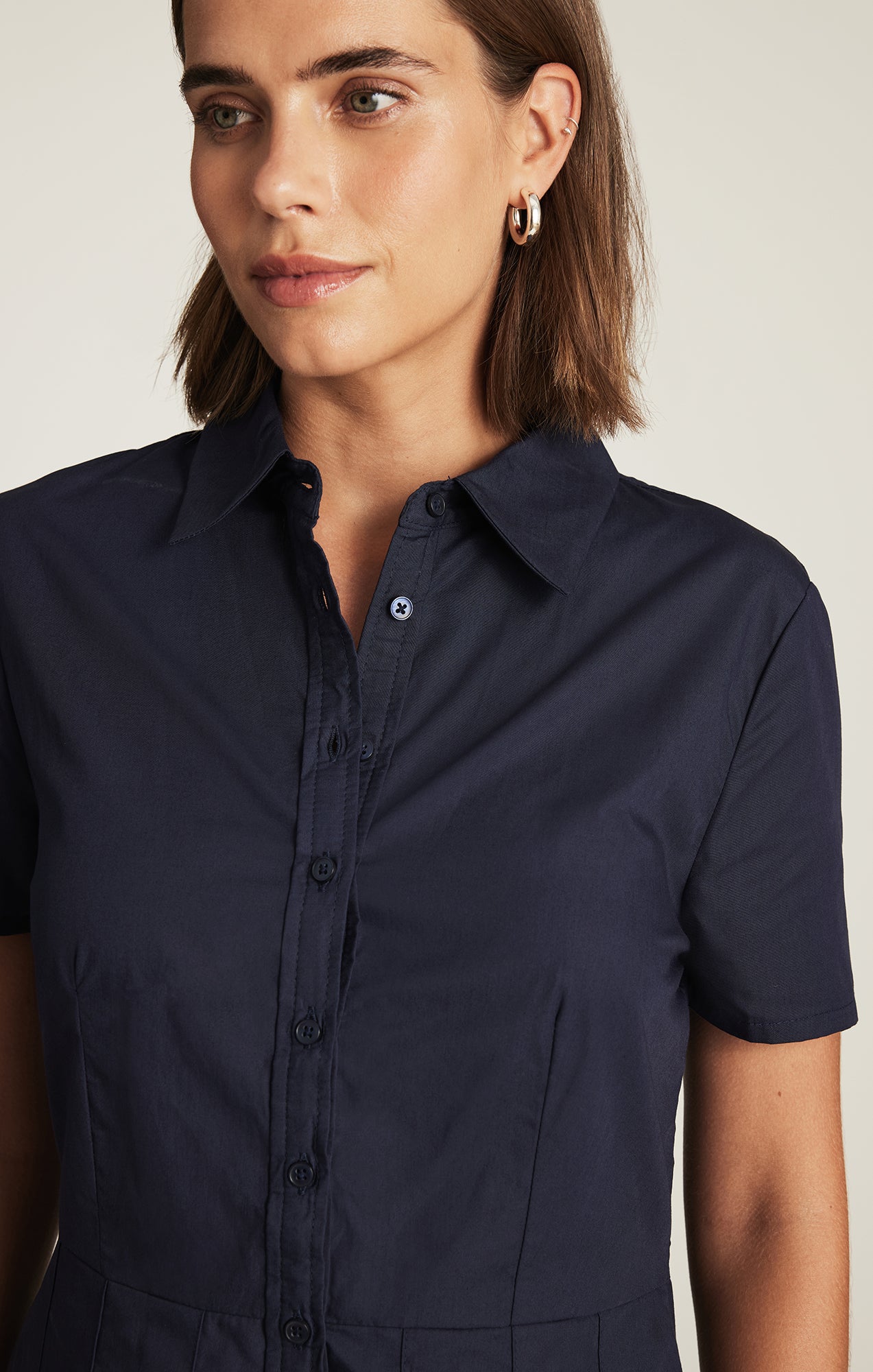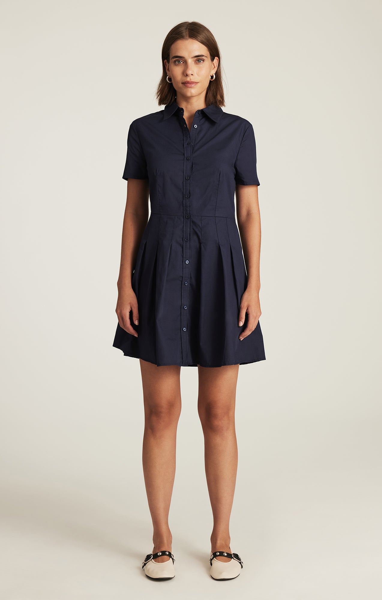 Be the first to review “PLEATED MINI DRESS IN NAVY BLAZER”